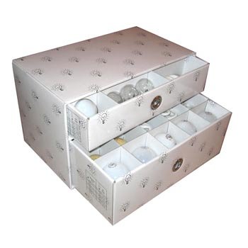 Don't be caught without the proper light bulb replacement when one burns out! This sturdy Light Bulb Storage Box lets you organize all sorts of light bulbs, so you'll always be prepared. Designed with a delightful light bulb pattern, this Light Bulb Storage Box has two pullout drawers that keep bulbs clean and protected. The bottom drawer on the Light Bulb Storage Box has large compartments for standard, 3-ways, reflectors, and CFL bulbs; the top drawer on the Light Bulb Storage Box offers smaller compartments for decorative round, chandelier, and nightlight bulbs. The Light Bulb Storage Box keeps bulbs upright for quick access, and its compact design fits on a shelf in your closet, garage or laundry room.Benefits of the Light Bulb Storage Box: Light Bulb Storage Box keeps bulbs organized so they don't break or get dirtyThis Light Bulb Storage Box eliminates bulky packaging and half-empty light bulb sleeves Each drawer of the Light Bulb Storage Box has a conversion chart to help convert standard wattage into CFL wattage Read more...