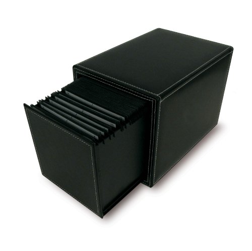 Faux leather, lined with white stitching, encompasses the durable frame of the Bellagio Italia CD/DVD Media Storage Box. A new addition to the esteemed Bellagio-Italia line is featured in a handsome 8.5 X 6.5 storage case, with the ability to house up to 100 CD's, DVD's, Blu-ray discs, photo CD's and other media discs. The ONE-TOUCH function allows discs to pop out with ease. Arrange your discs in numerical order, and enjoy the simplicity of locating discs with the supreme organization of the Index. While there are many other Media Storage Devices on the market, no other can amount to the caliber, as well as the refined, superior quality of the Bellagio Italia CD/DVD Storage Box. Read more...