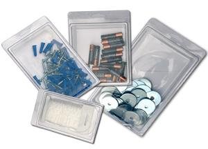 Extra Packs Clamshell Storage Cases Small 12 eachThe Extra Packs line of clear protective clamshell cases are ideal for quick and easy storage and transportion of small parts and items. Organize and protect small articles, nuts, bolts, screws, pins, batteries, collections, tools-- anything for which you'd like quick and easy access, portability and protection. They are durable attractive, reusable, versatile, recyclable and affordable. Manufactured from high density vinyl, Extra Packs are lightweight, easy to use and organize. A range of available sizes, makes for an easy, inexpensive storage and transport solution. Read more...