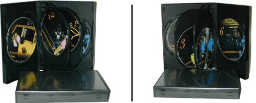 These are BLACK Six Quantity chubby DVD boxes! These boxes are 27mm thick (1.06") and hold one disc on each side and four more discs in two center flaps. The cases have a clear wrap-around sleeve (this is where you slide the front paper / artwork into so it shows). Perfect for box sets! The trays are removable so these can act as quad cases as well! Read more...