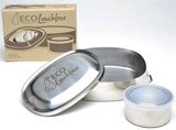 Tired of using Tupperware and other plastics? But you don't have other options for packing food for lunch? Try our new Oval ECOlunchbox made out of high-quality, food-grade stainless steel. ?Measures 6 1/2 inches long by 5 inches wide and 2 inches tall. Fits two halves of a sandwich stacked with room for sides. Also great for pastas, salads and other leftovers. ?Contains a stainless steel cup (3 1/2" diameter) with a no-leak, BPA-free plastic lid for sauces, dressings, yogurt, applesauce or other wet items. The cup fits inside the larger oval box or can be used separately. ? We have chosen not to use any plastic or other gaskets in the pressure-fitting lid of the oval box, so it's not 100% leak proof. Soups and other very wet items should be put in the small sauce cup with the plastic lid. ? Independently lab tested as lead free, food-safe grade 304 stainless steel. ? Dishwasher safe. Not for use in the microwave. Made in Thailand. Read more...