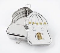 “Happy Home Dome” Bento Box We have some friends at the Capitol building that carry their lunch in this box. The dome-shaped top portion carries your main dish while the lidded inset container at the bottom carries sauces, dips or desserts without spilling. Made of high tensile strength 201 stainless steel with heavy-duty top/bottom latches to keep the container tightly locked. Spill-proof and dishwasher-safe. Imported. 4.7" x 7” x 2” high. Weighs 0.6 lb. Read more...