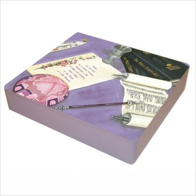 15006 Give this decorative storage box as the perfect Bat Mitzvah gift! Use this decorative storage box to hold all the mementos from the event such as your invitations and other letters received from guests and loved ones. Each decorative box is completely hand-finished and then signed and numbered by artist Sandie Satz. This storage box will hold all your memories of that very important milestone in a young woman's life. Also available in cream. Features: -Bat Mitzvah theme. -Constructed with solid wood. -Signed and numbered by artist Sandra Satz. -Soft flannel drawstring bag included. -Brass hinges and lid support. -Overall dimensions: 2.5'' H x 10.5'' W x 11.5'' D. Read more...
