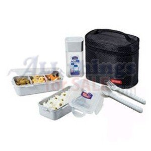 This is a high quality Bento lunch Box Set. The bento box is well designed, great for kids, adults, and seniors. This set includes 2 bento lunch boxes (Total of 940 ml), 1 bento lunch bag, 1 spoon, 1 fork, and 1 water bottle. The bento box features silicone air tight clasps to keep the bento perfectly close and keep food fresh. It also comes with the bento divider to create the portions of your food. The bento box is microwave safe. This set also includes an elegant, sturdy insulated bento bag that help keep temperature of your food longer, making a great meal for you and your family. All items in this set fit in the bag perfectly and securely.Bento Lunch Box Feature- Durable and Sturdy high quality plastic bento lunch box- Each box has 6 locks to secure the storage- Easy to Use with full perimeter locking action, which is very quick and easy, even for kids to seniors (5-75 years old)- Absolutely air tight with Silicone feature- Liquid Tight- Stackable- Perfect Seal (the precious food you keep inside will remain fresher a lot longer)- Freezer Safe- Microwave Safe for reheating purpose It is microwavable straight from the freezer.- Dishwasher Safe- Built-in Food Divider in one bento box- Made in KoreaBento Lunch Bag Feature- Thermal Lunch Bag (with insulation) helps keep temperature, warm or cool, for longer- Sturdy - Built-in Holder, easy to carry- Elegant- Easy to use with 2 Zippers design- Built-in Chopsticks Storage Space on the top- All items in this set fit in the bag perfectly and securelyWater Bottle Feature- BPA Free- 300 ml or 10 oz- Lid can be used as a cup for drinking- Slim water bottle, for easy storage in bento bag and carrying around.- This bottle can be kept in the bento bag, together with other items in this set, no separate bag needed- Made in Korea Read more...