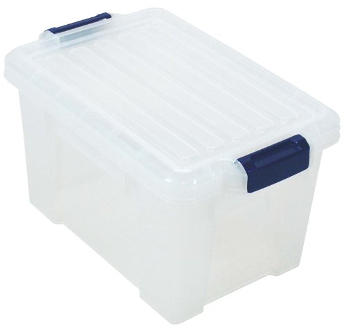 This 21 quart (5.47 gallon) storage tote is a sturdy option for organizing and storing tools, clothing, crafts, camping accessories, sports gear or gardening supplies. The reinforced buckled lid locks in place to protect its contents. These heavy duty storage boxes are ideal for clearing up clutter in your basement, garage, office and even your closet. They are easily stackable for maximum storage. SIZE : 11.7W x 18.1L x 10.1H Read more...