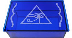 Decorative Blue Glass Storage Box with Sandblasted Egyptian Eye of Horus Design on Lid - Mirror Bottom Review
