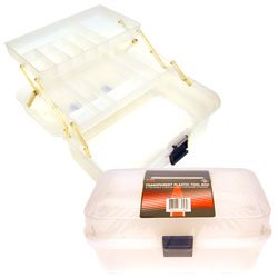 This great transparent folding plastic tool box will fit all sorts of storage needs.? Compacting three levels of storage in this roomy box will allow for more storage than the space offered in other storage boxes. Read more...