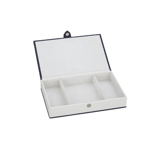Our stackable jewelry cases are a modern mix of fashion and function. These plush ivory faux leather cases are smartly accented with a deep black/purple trim and lined with protective flocked velvet. Four different sizes meet all of your storage needs and easily stack, creating a striking pyramid effect on your bureau. They also easily fit in a safe, or can be tucked into drawers or stacked in your closet. Each features a magnetic snap closure. Read more...