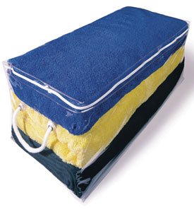 Store and protect out of season items with this Large Vinyl Storage Bag. This storage bag is perfect home storage, and also provides ideal water-resistant storage for your boat or RV! Made of soft 12 gauge vinyl, this storage chest can squeeze into any spot, making it much more versatile than rigid storage trunks. The clear vinyl construction also lets you quickly identify the contents of your chest. This clothing storage solution also features heavy rope handles for easy carrying. The self correcting nylon zipper opens this storage bag on three sizes, so you can easily fill this organizer with large blankets, comforters, linens, sweaters, coats and more! Dimensions:24" wide x 12" high x 10" deep Read more...